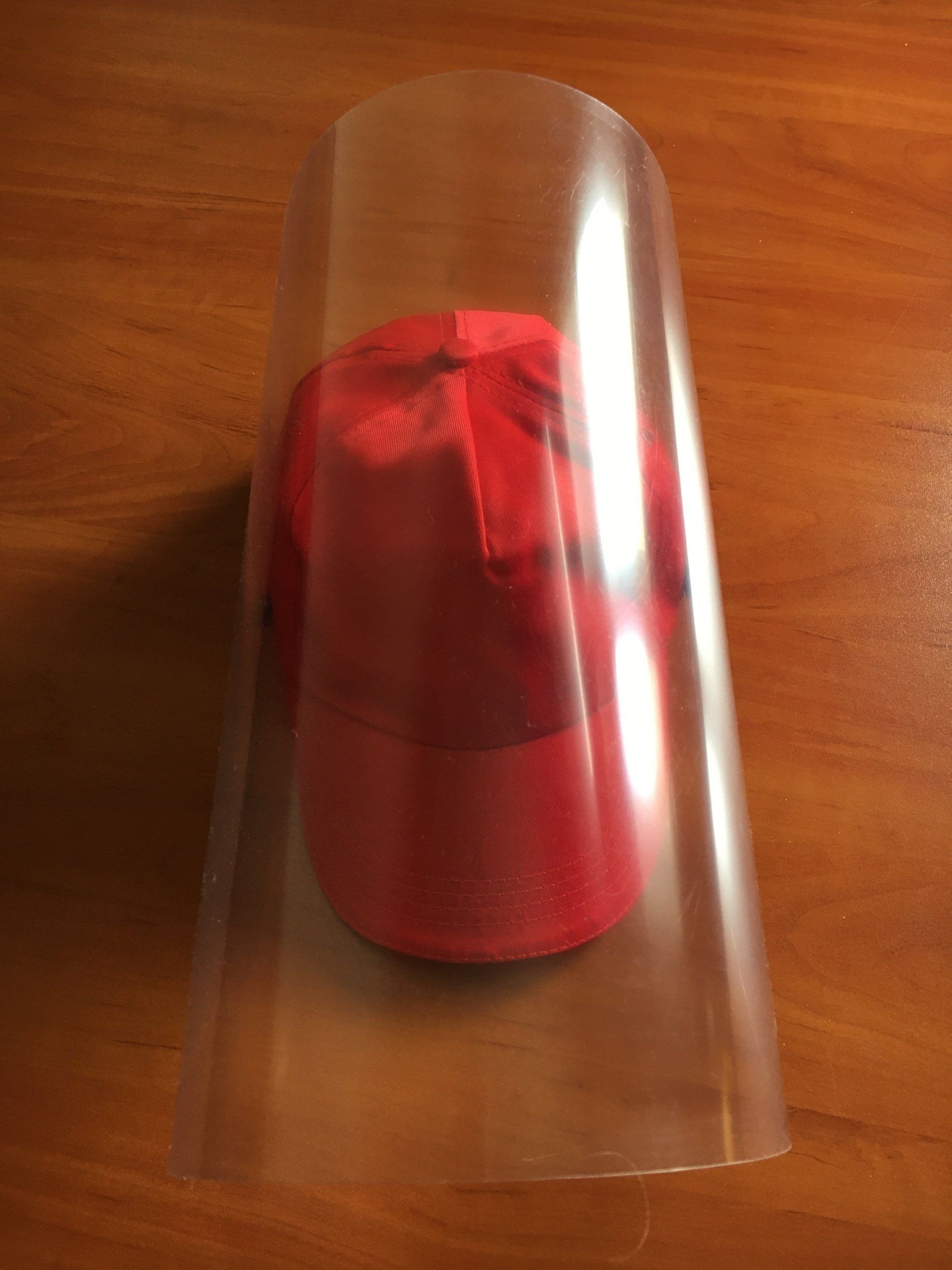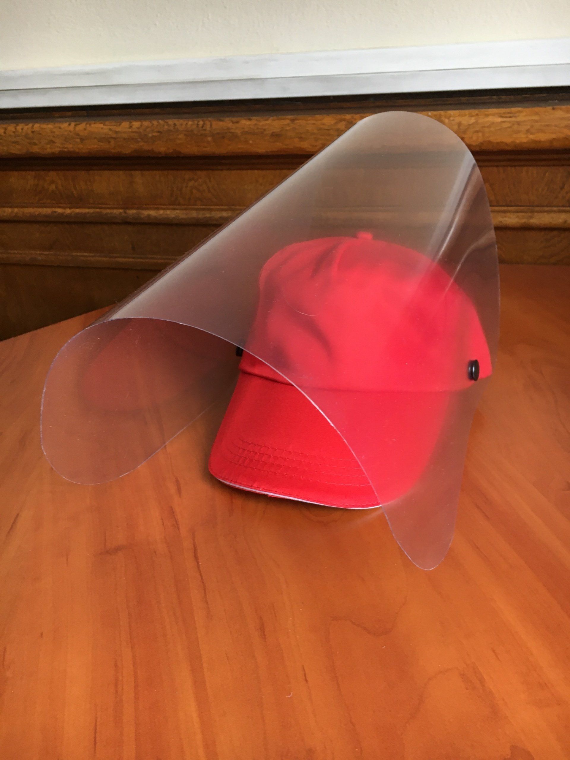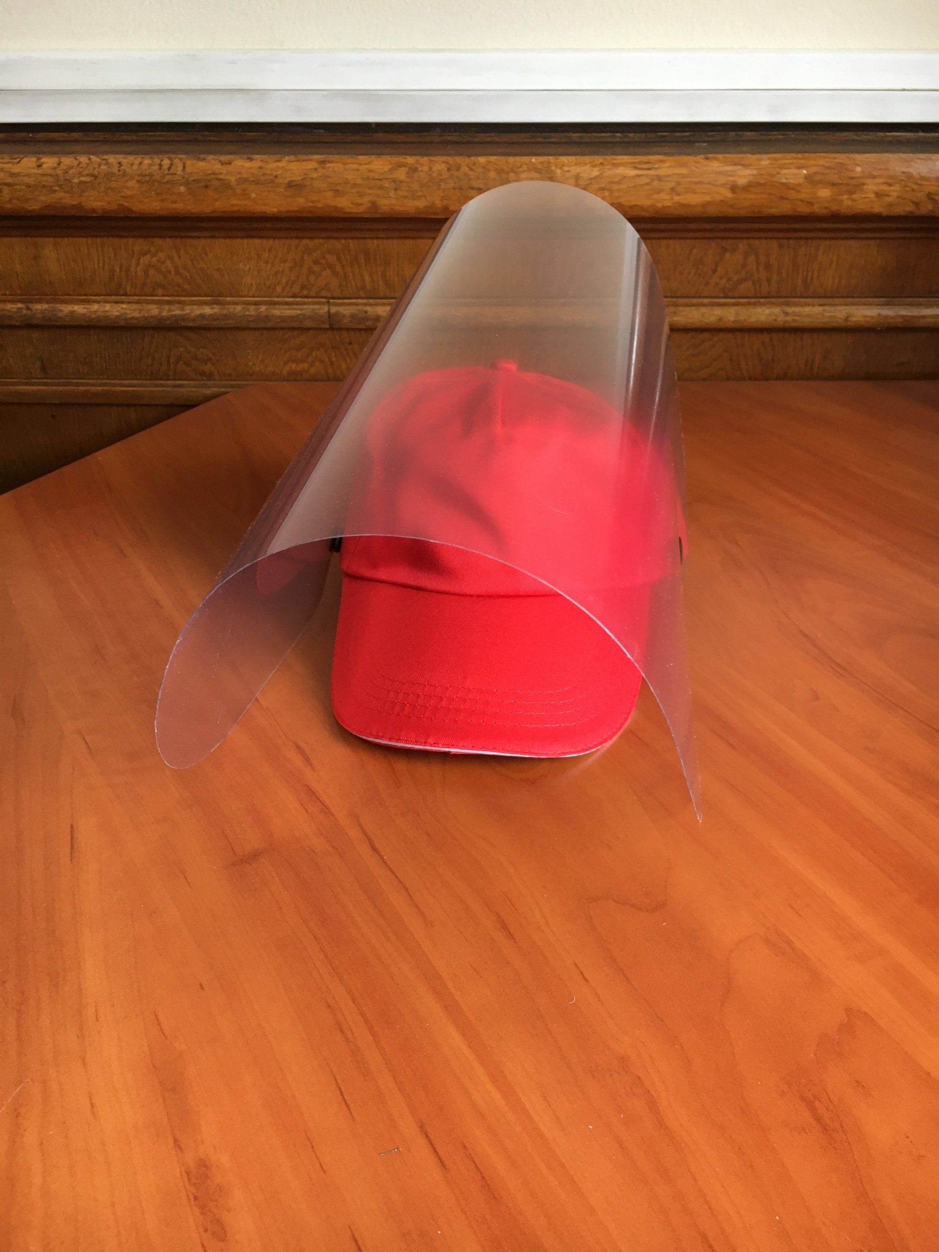 The product is designed to create a physical barrier in front of a person in relation to the environment and the people around him. It protects the whole face, especially from direct splashes or saliva. It can be adapted to different degrees according to the positioning in relation to the visor of the hat or it can be completely raised.