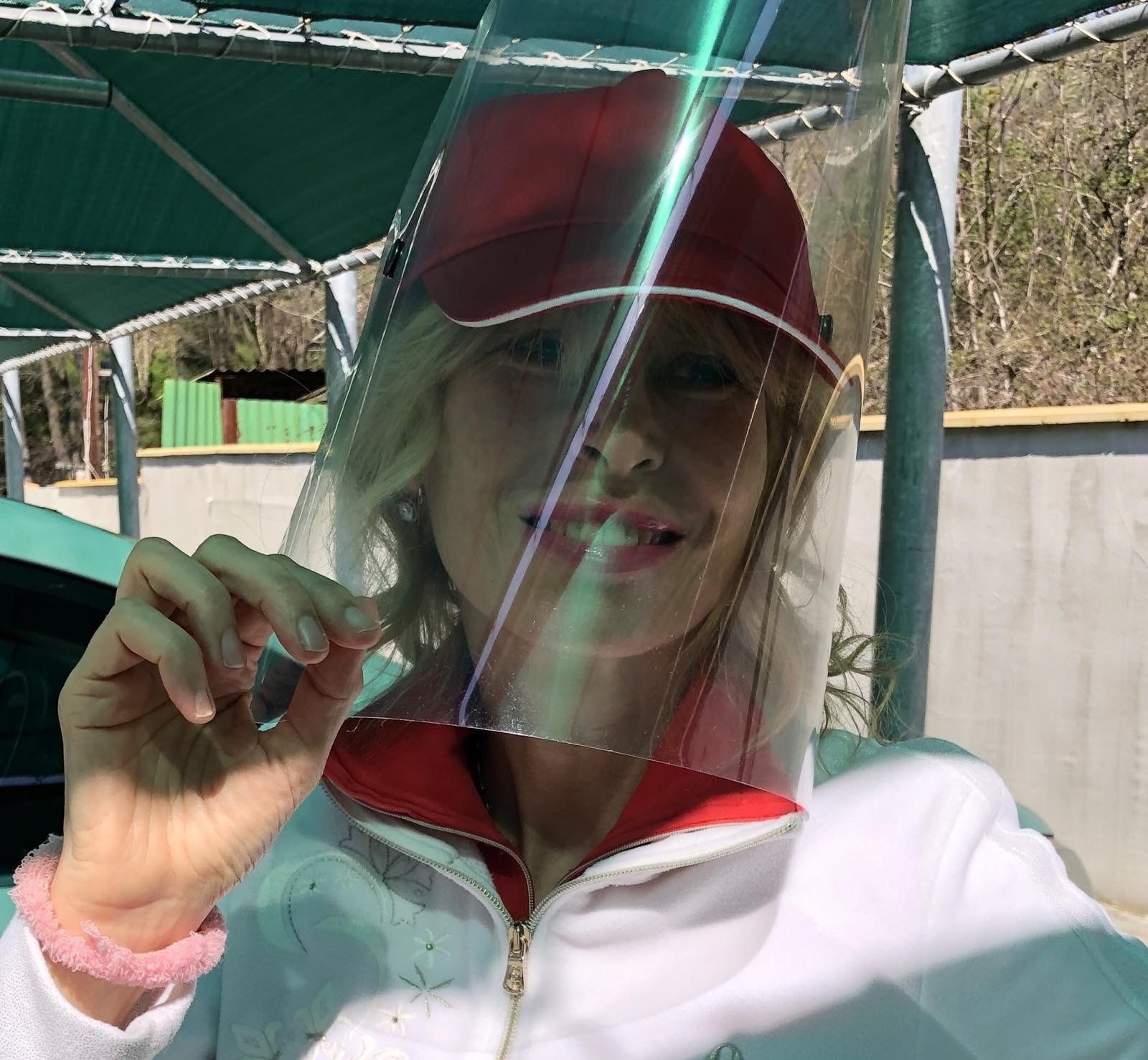 1. Hat or visor complete with plastic shield for adults and children: transparent, flexible, unbreakable, reusable, can be cleaned and disinfected